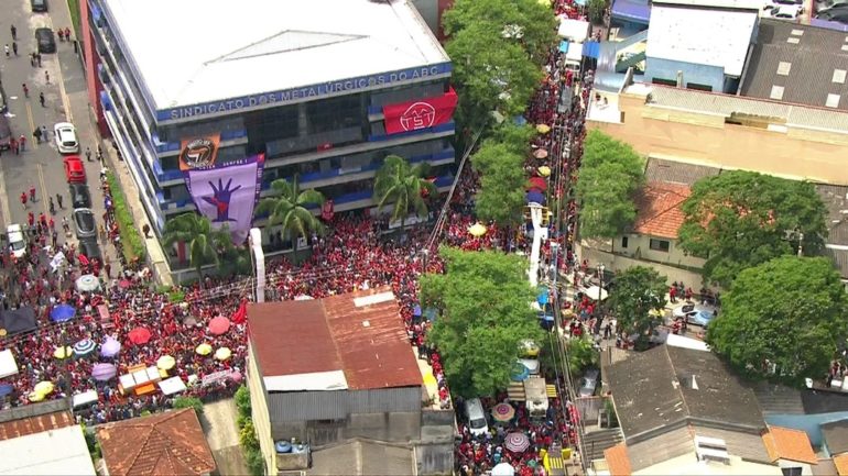 No sindicato, Lula almoçou com a família, lideranças petistas e sindicalistas. À espera do ex-presidente, apoiadores ouviram música e cantaram jingles em homenagem a Lula. Alguns apoiadores passaram mal com o calor e médicos que estavam entre a multidão se ofereceram para ajudar.