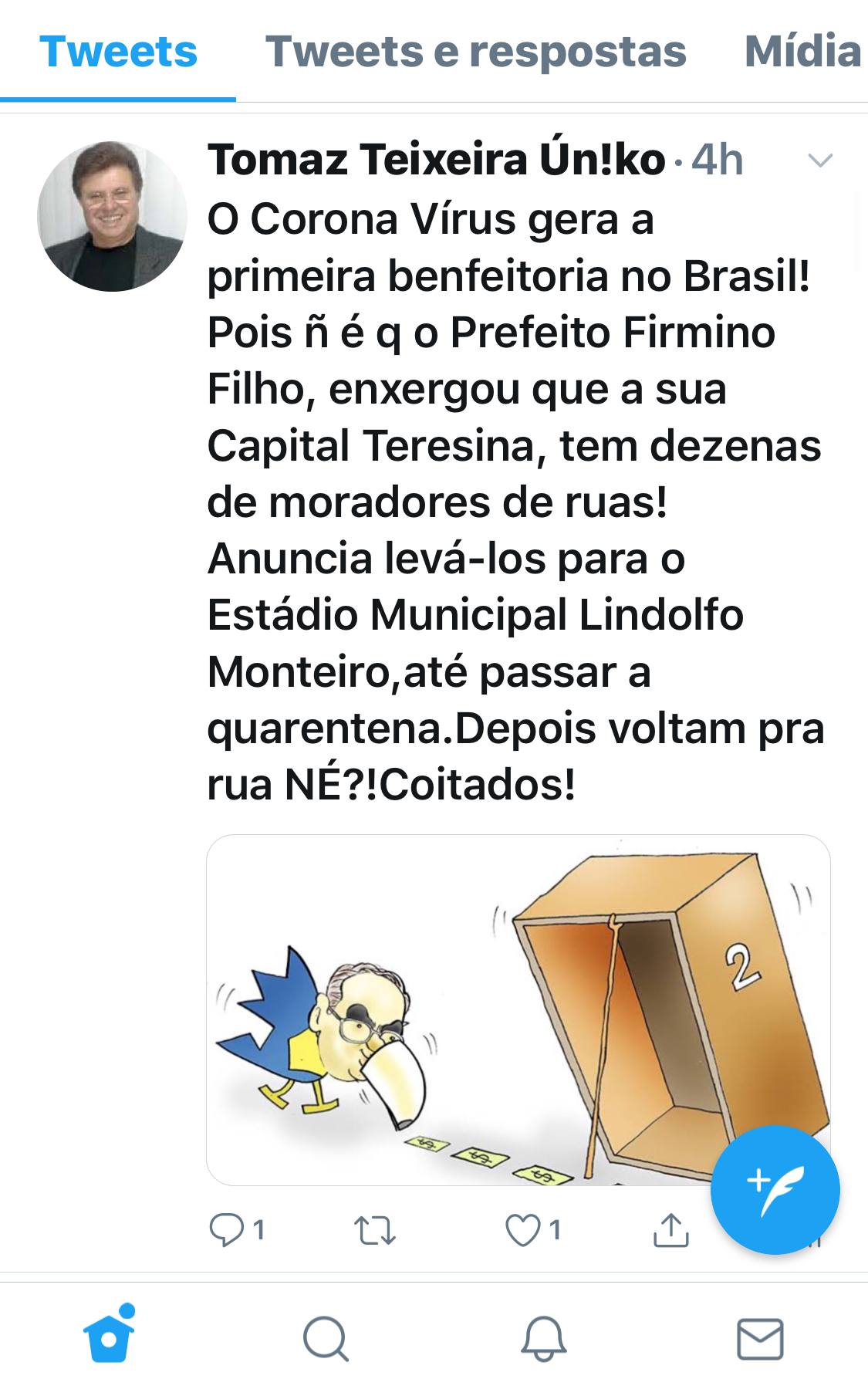 Prefeito Firmino Filho, deveriam colocar as eleições de lado e de forma conjunta, traçarem um planejamento de resultados, para a geração de muitas UTIs com respiradores. Pedir à bancada federal do Piauí, junto ao Ministro Mandetta, liberação de mais verbas para o Piauí, devido a falta de leitos de UTI em todo o interior. Isso é grave e precisa ser visto com mais responsabilidade.