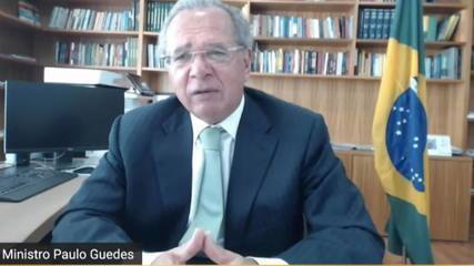 No evento, o ministro falou sobre as estratégias e desafios para a economia nos próximos meses. Segundo Guedes, ao final de 2020, o governo terá gastado mais de R$ 600 bilhões, ou 10% do PIB, para auxiliar os desassistidos e combater os efeitos da pandemia no emprego e na renda.