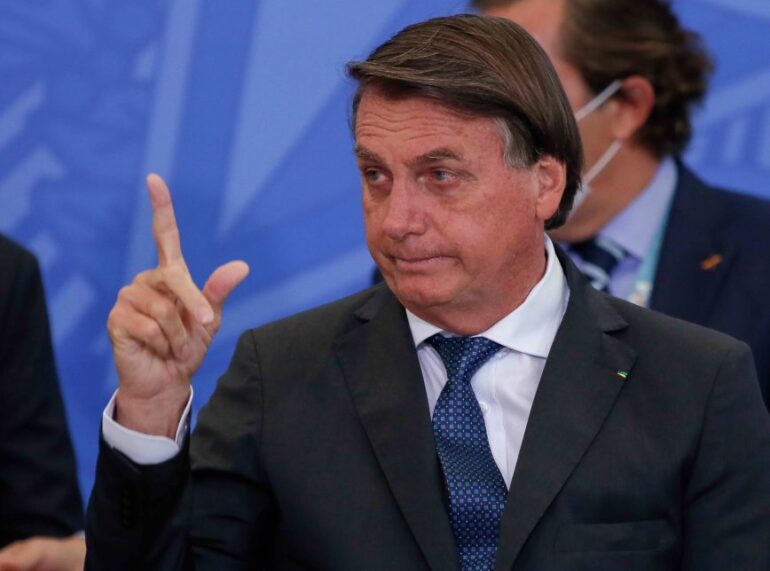 Bolsonaro também voltou a defender medicamentos ineficazes para o tratamento da Covid-19, reclamou do uso de máscaras e disse que quem está pegando covid agora é porque “ficou em casa”.