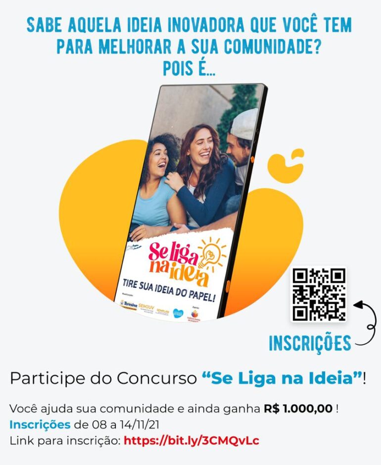 Estarão abertas até o dia 14 de novembro as inscrições do “Se Liga na ideia”. Programa da Prefeitura de Teresina, desenvolvido pela Secretaria Municipal da Juventude (SEMJUV) em parceria com o Lagoas do Norte.