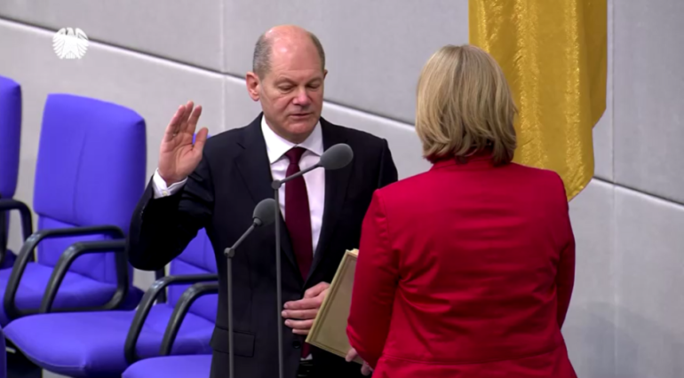 Scholz teve 395 dos 736 votos dos deputados porque seu partido, o Social Democrata (SPD), foi o mais votado nas eleições parlamentares de setembro, e conseguiu uma coalizão tripla, com os Verdes e o Partido Democrático Liberal (FDP).