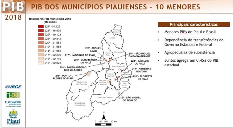 Em maio deste ano, a FGV, com base em dados do IBGE, atestou, levando em conta a síntese do desempenho municipal da economia observados em 2019, que o Piauí deixou o mapa da pobreza do país. Com isso, o estado não tem mais nenhum município na lista das 50 cidades mais pobres do Brasil. O ranking leva em conta a renda per capita, ou seja, o resultado da divisão da riqueza de um lugar pelo número de habitantes. Na prática, a renda do piauiense cresceu e se passou a viver melhor no estado.