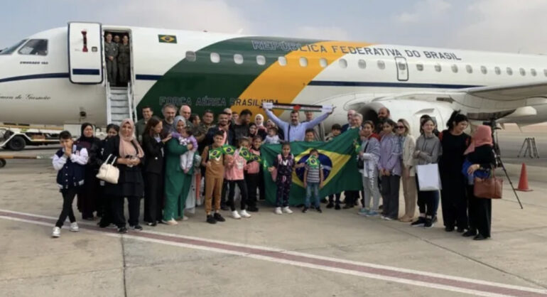 O avião com os 32 brasileiros que deixaram a Faixa de Gaza no domingo (12) decolou rumo ao Brasil na manhã desta segunda-feira (13). O desembarque na Base Aérea de Brasília está previsto para 23h30. No local, o presidente Luiz Inácio Lula da Silva (PT) deve recepcionar os repatriados.