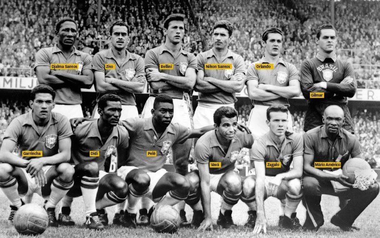 Fomos buscar na INTERNET, o histórico de nomes que se destacaram no FUTEBOL MUNDIAl, desde que fomos campeões do mundo, naquela Copa de 1958, quando ali, nascia aos 17 anos, O REI PELÉ levando o Brasil ao primeiro campeonato do mundo, coisa que até aquela copa de 58 não tinha conhecido, depois de perder uma Copa do Mundo numa final contra o Uruguai, em pleno