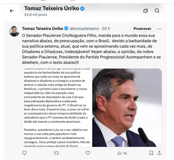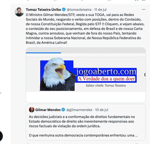 - VEJAM MAIS NO LINK AO LADO : https://x.com/tomazteixeira