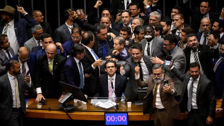 - Zé Trovão (PL-SC): suspensão do mandato por 30 dias por obstruir o acesso de Hugo Motta à cadeira de presidente.