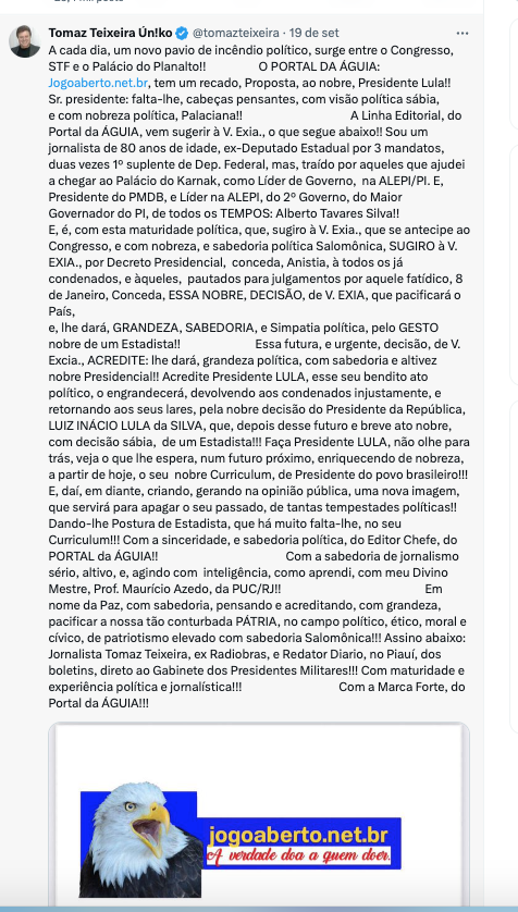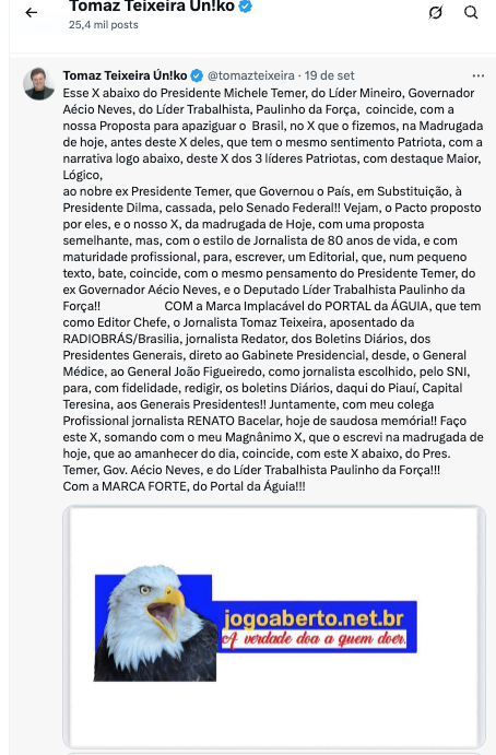 NOBRE COINCIDÊNCIA DO X, (ex-TWEETER) DO   (Jorn. Tomaz Teixeira, com a nobre iniciativa, do EX- Presidente Temer, EX- Gov. Aécio Neves e do Dep. Paulinho da Força, com NOTA PÚBLICA, AO PAÍS!!)