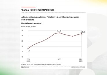 A taxa de desemprego no Brasil no período da pandemia do Covid. O desemprego atingiu 14,4% da força de trabalho. O número é o maior desde o início da série histórica, em 2012. As maiores ta…