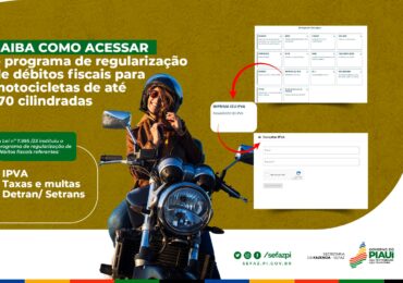 Já está disponível o sistema para os contribuintes piauienses regularizarem as dívidas de motos até 170 cilindradas (cc), com 90% de desconto no Imposto sobre a Propriedade de Veículos Automotores …